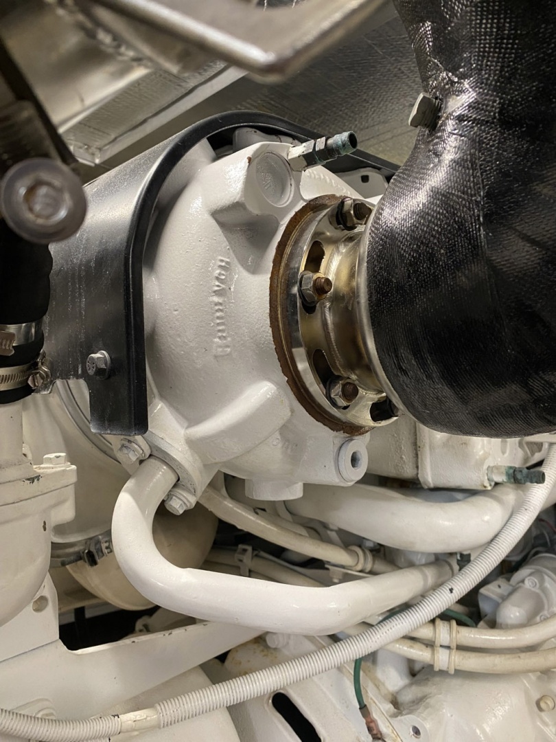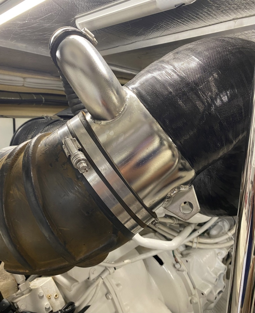 - Replace turbos and exhaust risers, custom SS exhaust risers relocated downstream from the turbos.
